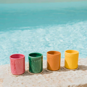 The La Piscina Ceramic Cup Set is handmade and hand-painted by artisans in Puglia, Italy. Inspired by the warmth and ease of Italian summers spent poolside or at long, sprawling lunches, each piece is one-of-a-kind, designed to bring joy to the table.