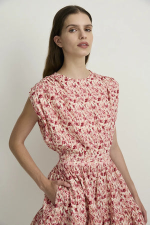 STYLE: A delight of a sundress with modern and feminine details, in limited edition PINK BLOOMLIGHT print - a fresh and timeless print that evokes florals in a graphic way.