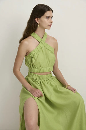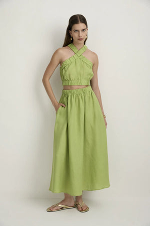 STYLE: A simple elastic waist skirt with high splits in the sides - a perfect building block for a summer wardrobe, it beautifully co-ordinates with the X-front Crop. Here in our zesty and uplifting green we call Pear.