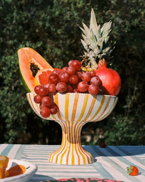 Inspired by the striped shopfront awnings of Italy’s vibrant fruttivendolo markets, this large ceramic fruit bowl brings a sense of abundance to the table. Ideal for displaying fresh produce at home or serving a generous pasta course during long, sun-drenched lunches.