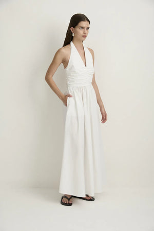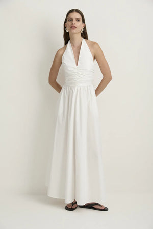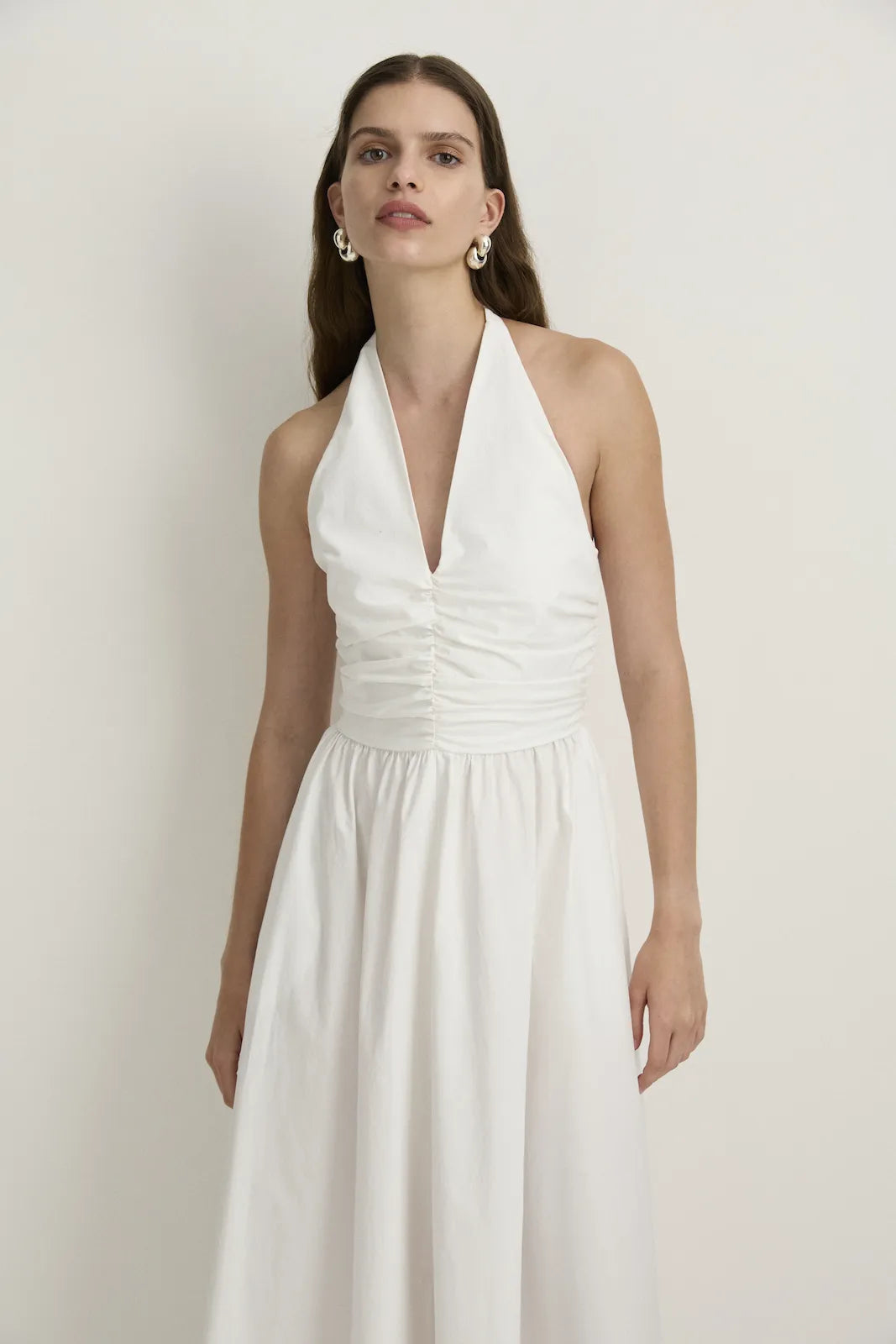 STYLE: A modern and feminine Halter sun dress, here in fresh white cotton.