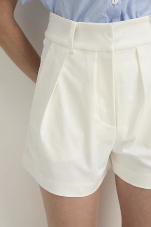 TAILORED PLEAT SHORTS - WHITE COTTON